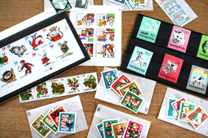 幼い頃から切手が好きで(コレクターではないので知識はありません) とくに、ここ数年は独特の色使いやグラフィックが魅力のヨーロッパの切手に惹かれ、 時間を忘れて眺めてしまうこともしばしば…。