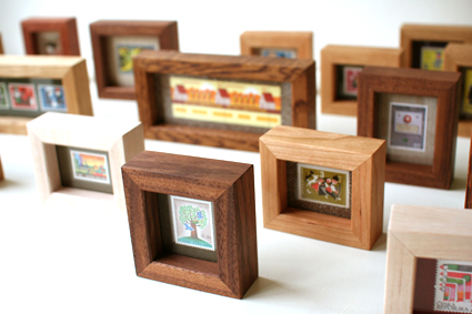 あるとき家具製作の端材で小さなフレームを作って納めてみたらよりその世界観を楽しめるのでは?!… と、やってみたところみごとにハマってしまいました。