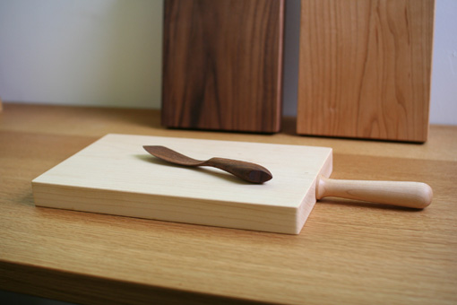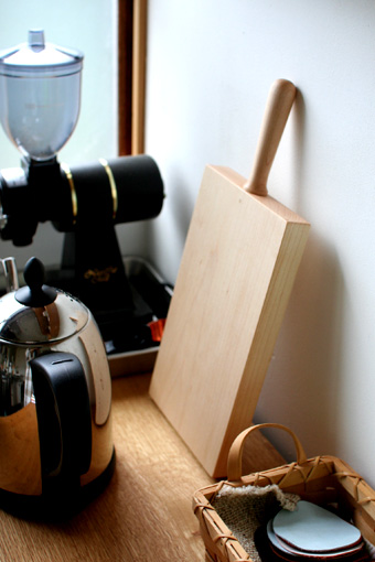 Recommend...... テーブルに木のものがひとつあると暖かく感じられます。 長方形の板に同素材でハンドルをつけたシンプルなデザインですが、板の厚みを充分にとっているので、存在感あるものに仕上がっています。 パンやチーズ、フルーツを切り分けたり、盛り皿としてそのまま食卓に置いたりと、使い方を考えるのも楽しいですね。