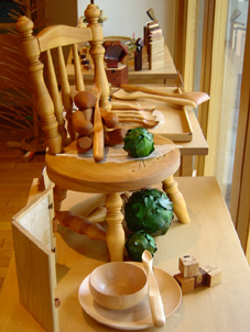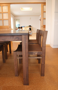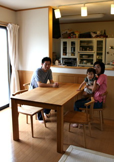 以前製作したものとチェアは座面の色違い。テーブルは天板の厚みを5ミリ薄く、脚は1センチ細くしただけで