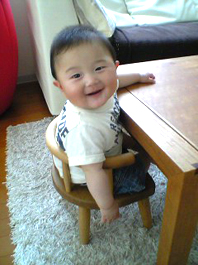 おすわりしてごきげんの息子さまのかわいい笑顔のPHOTOを送っていただきました!