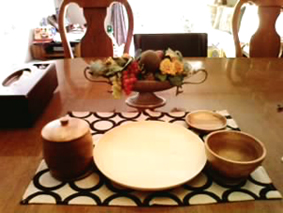 テーブルのお写真です。お手持ちの椀との相性もよい、と気に入っていただいて嬉しかったです。