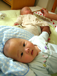 双子のお兄ちゃん、弟くんのお写真。お生まれになって半年とちょっととのこと。可愛いですね!
