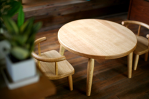 MWC.WORKSHOP定番のチャイルドチェアにあわせた、丸い天板の机です。