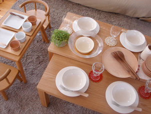 おこさまのいらっしゃる空間で、雰囲気の合う使い勝手のよいサイズ・形状でのテーブルを