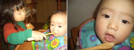 食欲旺盛なむすめさまと、ごはんをあげている優しいおねえちゃん。