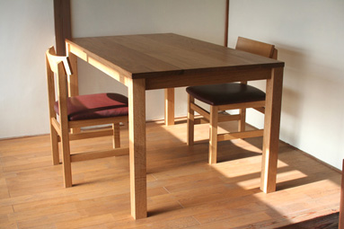 Kさまは、ナラ材のテーブル&チェアに、革色はチョコの座面。