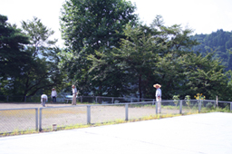 横のゲートボール場では元気なお年寄りの方々が