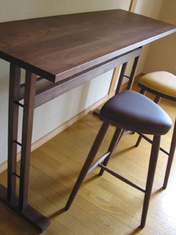 材/ブラックウォールナット/座部合成レザー サイズ/W300×D300×H680 仕上げ/オイル,ワックス